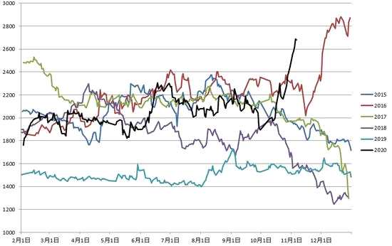 整體而言,期貨價(jià)格估值偏高,而現(xiàn)貨端未來(lái)上行空間受限,短期盤面或向下修復(fù),嘗試逢高拋空A2101、A2105。