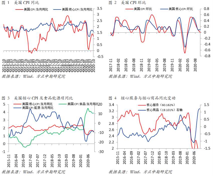 l? 美國10月季調(diào)后CPI月率錄得零增長,表現(xiàn)不及0.1%的預(yù)期和0.2%的前值;未季調(diào)CPI年率亦錄得1.2%,表現(xiàn)不及1.3%的預(yù)期和1.4%的前值,整體通脹較預(yù)期和前值表現(xiàn)疲弱。剔除價格易波動的食品和能源部分,美國10月未季調(diào)核心CPI月率亦錄得零增長,較0.2%的預(yù)期值和前值回落;核心CPI指數(shù)同比上漲1.6%,表現(xiàn)亦不及1.7%的市場預(yù)期和前值,核心通脹表現(xiàn)亦出現(xiàn)回落。整體來看,盡管此前通脹隨著美國經(jīng)濟持續(xù)復(fù)蘇而企穩(wěn),然而二次和三次疫情繼續(xù)沖擊需求,導(dǎo)致通脹表現(xiàn)不及預(yù)期和前值,仍處于低位;當(dāng)然因經(jīng)濟復(fù)蘇和超低的利率,通脹繼續(xù)大幅回落的可能性很??;考慮到雖然制造業(yè)仍在持續(xù)的復(fù)蘇,然美國服務(wù)業(yè)活動依然疲弱,通脹全面加速的風(fēng)險亦相對較低。隨著美國大選臨近尾聲,美國新任政府加大防疫管控措施,疊加疫苗的進展和新一輪的財政刺激措施的逐步來臨,2021年初,美國需求將會持續(xù)好轉(zhuǎn),美國通脹同比方面則是持續(xù)的小幅回升。