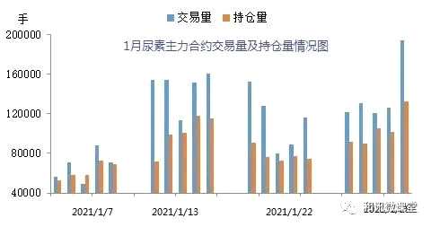 從元月初盤面來看,至1月中旬盤面突破2000元/噸的大關;進入第三周,盤面走勢小幅轉跌,盤面出現(xiàn)一定松動;月末最后一周盤面轉跌為漲,周內盤面兩度明顯上揚,月末收盤價格達上市以來最高值,當日盤面最高價也是上市以來最高值。截至上周1月29日,尿素主力合約2105收盤價2058元/噸,較上月最后交易日的1831元/噸上漲227元/噸,漲幅12.4%;尿素主力合約2105結算價2032元/噸,較上月最后交易日的1829元/噸上漲203元/噸,漲幅11.1%。