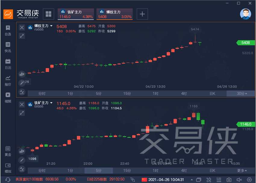 內(nèi)盤商品期貨大面積飄紅,鐵礦石主力合約一度漲超6%