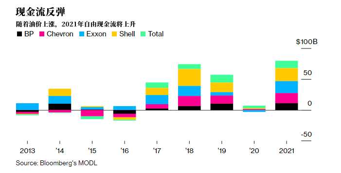 摩根大通表示,第一季度將是石油行業(yè)的拐點(diǎn)。彭博的數(shù)據(jù)顯示,今年五大石油巨頭的自由現(xiàn)金流(扣除運(yùn)營支出和投資后剩下的現(xiàn)金流)將反彈至800億美元,而2020年這一數(shù)字約為40億美元。