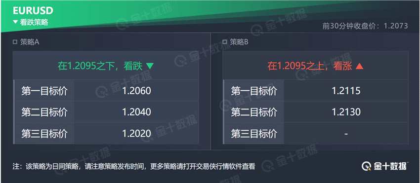 歐元兌美元多空轉(zhuǎn)折點(diǎn)為1.2095,目前歐元兌美元在轉(zhuǎn)折點(diǎn)下方看跌,支撐位為1.2060和1.2040;若歐元兌美元回升至1.2095上方,則看漲,阻力位為1.2115和1.2130。