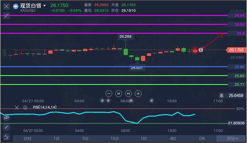 技術(shù)劉:現(xiàn)貨白銀在25.95上方獲支撐,關(guān)注26.40阻力位