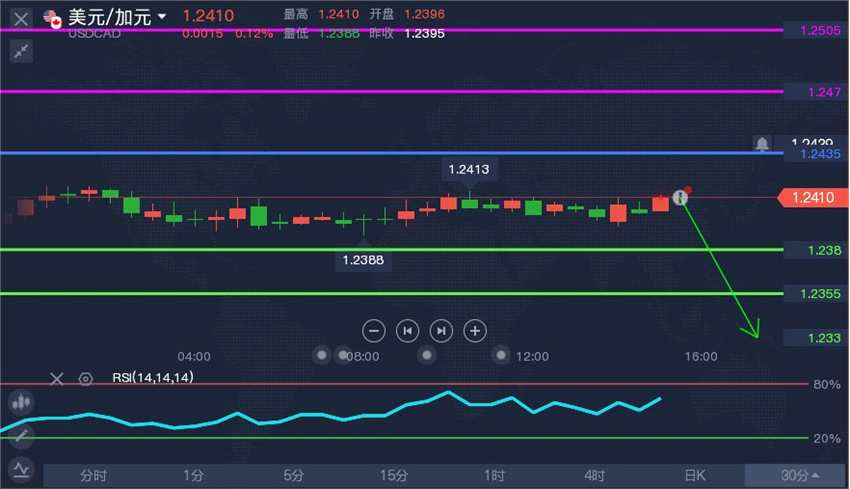 美元兌加元在多空轉(zhuǎn)折點(diǎn)1.2435下方看跌,支撐位為1.2380和1.2355;若美元兌加元回升至1.2435上方,則看漲,阻力位為1.2470和1.2505。
