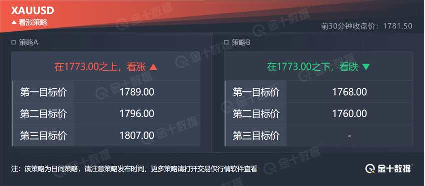 現(xiàn)貨黃金多空轉(zhuǎn)折點(diǎn)為1773,目前金價(jià)在該水平上方看漲,阻力位為1789和1796;若現(xiàn)貨黃金回落至1773下方,則看空,支撐位為1768和1760。