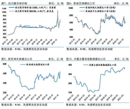 2021年以來煤炭?jī)r(jià)格持續(xù)在高位運(yùn)行,進(jìn)入4月份后雖然全國(guó)各地區(qū)停止供熱,民用煤需求下降,但是因整體宏觀環(huán)境良好,工業(yè)煤需求旺盛,4月份僅中旬煤價(jià)略有回調(diào)外,整體煤價(jià)在4月份漲勢(shì)較猛。截至4月30日,京唐港動(dòng)力煤價(jià)格為757元/噸,較3月底上漲55元/噸;秦皇島港動(dòng)力煤價(jià)格為796.50元/噸,較3月底上漲60元/噸。
