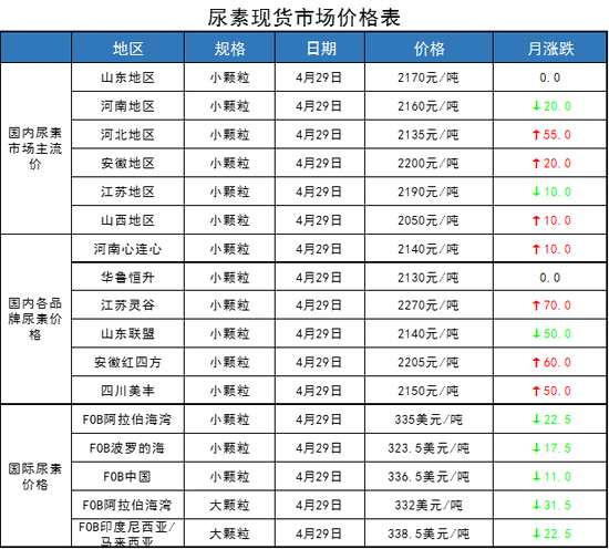 另外,日產(chǎn)量數(shù)據(jù)也顯示,截至4月28日,全國(guó)尿素日產(chǎn)量為15.6萬噸,較3月底增加0.19萬噸。其中內(nèi)蒙古日產(chǎn)量為2.2萬噸,月環(huán)比增加0.66萬噸;山東日產(chǎn)量為2.1萬噸,月環(huán)比減少0.08萬噸;山西日產(chǎn)量為2.1萬噸,月環(huán)比減少0.20萬噸;河南日產(chǎn)量為1.0萬噸,月環(huán)比增加0.11萬噸。綜合來看,4月份尿素企業(yè)開工率和日產(chǎn)量均稍有回落,但整體仍處于合理偏高水平, 5-6月份是傳統(tǒng)的檢修季,但鑒于前期檢修企業(yè)已經(jīng)較多,預(yù)計(jì)5月份開工和日產(chǎn)將高位持穩(wěn)。建議關(guān)注液氨和尿素的利潤(rùn)情況,如果液氨利潤(rùn)不及尿素,不排除大量液氨轉(zhuǎn)產(chǎn)尿素的可能。