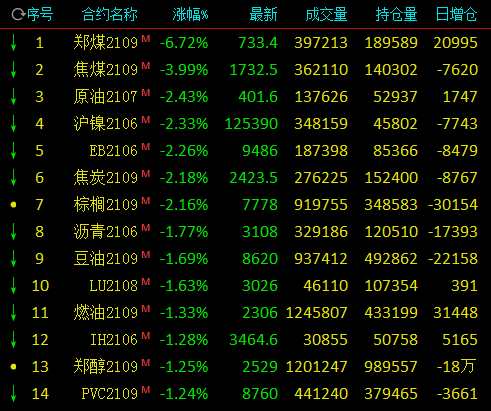 5月21日,國內(nèi)期市早盤漲跌不一,鮮果大漲,蘋果漲停,紅棗觸及漲停漲近5%;鐵合金大漲,硅鐵漲近5%,錳硅漲逾3%;黑色系連續(xù)下跌勢能減弱,玻璃漲逾1%,熱卷漲近1%,動力煤仍跌近7%,焦煤跌近4%。能化品中,20號膠、橡膠漲近4%,尿素漲近3%,原油、苯乙烯跌逾2%。