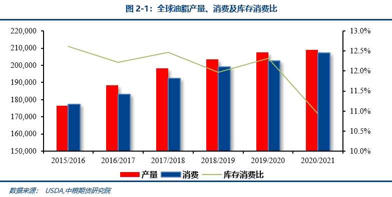 回顧2020年秋季大報(bào)告,我們給出了全球油脂庫(kù)存、庫(kù)存消費(fèi)比處于低位將支撐油脂價(jià)格走高的判斷。站在當(dāng)前的時(shí)點(diǎn)來(lái)看,緊張程度有所緩解但整體格局仍在持續(xù)。