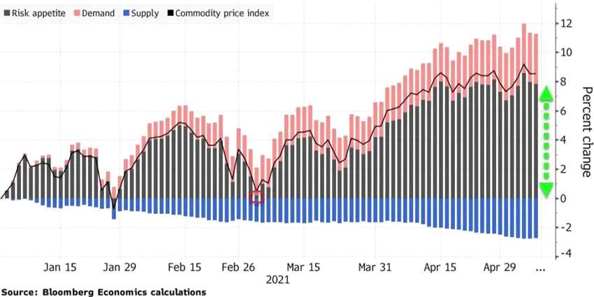 但是,正如彭博社的 Tom Orlik 指出的那樣,今年大宗商品價格的走勢主要是由風(fēng)險偏好驅(qū)動的,而不是基本需求或供應(yīng)短缺。