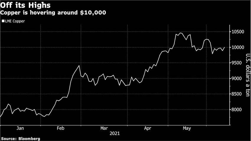 不過過去數(shù)周,這些看漲押注遭遇了挫折:LME期銅近期已經(jīng)跌破了每噸10000美元,美國中西部熱軋卷鋼期貨的基準(zhǔn)價格自5月觸及紀(jì)錄高位以來一直未能進(jìn)一步走高。彭博大宗商品現(xiàn)貨指數(shù)周一再度下挫。