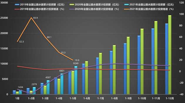 圖1 前5個(gè)月全國(guó)公路水路投資及增速