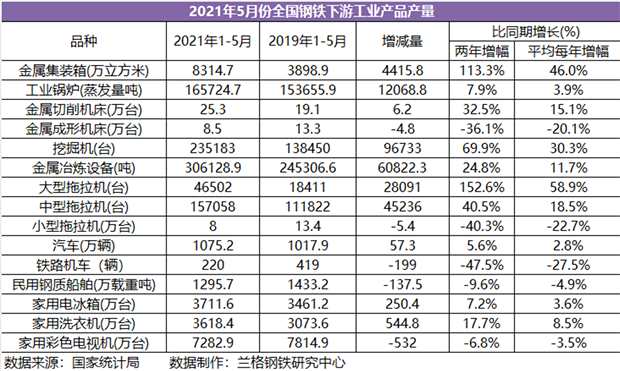 表1 前5個(gè)月全國(guó)鋼鐵下游工業(yè)產(chǎn)品產(chǎn)量