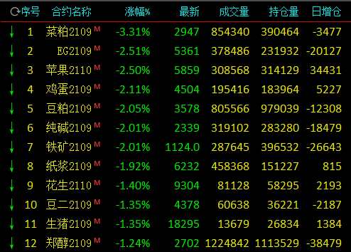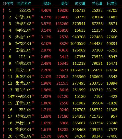 收評(píng):不銹鋼、滬錫漲逾4% 菜粕跌逾3%