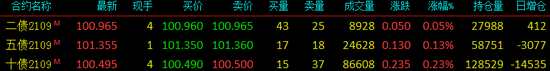 2021年8月2日,國債期貨各品種主力合約全線上漲。截至下午收盤,十年期主力合約漲0.23%;五年期主力合約漲0.13%;二年期主力合約漲0.05%。