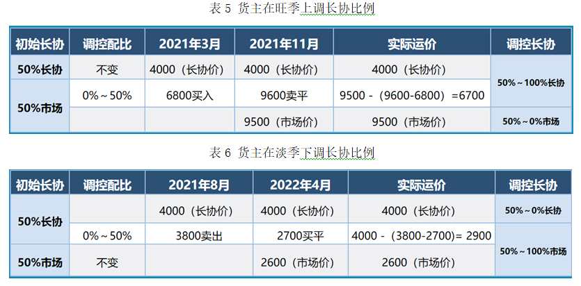 模擬案例6:貨主B采用“50%長(zhǎng)協(xié)+50%市場(chǎng)”相結(jié)合的方式,以$4000/TEU的均價(jià)簽訂了亞歐航線(xiàn)長(zhǎng)協(xié)合同。該貨主預(yù)測(cè)今年四季度運(yùn)價(jià)有可能進(jìn)一步上漲,而明年春節(jié)之后運(yùn)價(jià)將回歸理性,因此采用集裝箱運(yùn)價(jià)期貨調(diào)整長(zhǎng)協(xié)和市場(chǎng)比例。