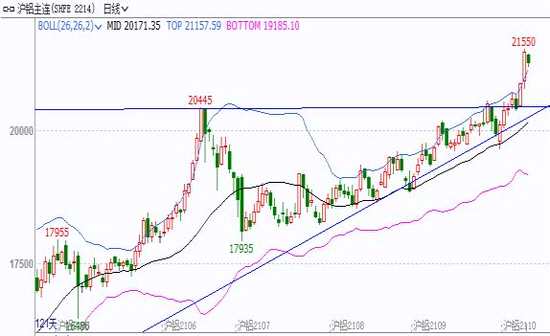 展望9月,由于電解鋁生產(chǎn)過程需要消耗大量電力,并產(chǎn)生大量二氧化碳,該產(chǎn)業(yè)成了各省“雙高”調(diào)控的重點行業(yè),以及受“碳中和”、“碳達峰”政策影響較大的行業(yè)。今年受電力供應(yīng)緊張以及能耗調(diào)控影響,電解鋁供應(yīng)已經(jīng)有所收縮,涉及產(chǎn)能預(yù)計約130萬噸。近日,新疆昌吉州規(guī)定當(dāng)?shù)睾弦?guī)電解鋁產(chǎn)能數(shù)量,而新疆又是我國第二電解鋁生生產(chǎn)大省,這表明我國對電解鋁產(chǎn)能調(diào)控的范圍進一步加大。另外,發(fā)改委已經(jīng)明確,電解鋁優(yōu)惠電價將取消,這將抬升電解鋁的生產(chǎn)成本,高成本的電解鋁產(chǎn)能將被迫退出,從中長期來看,該政策抑制電解鋁產(chǎn)能投放。社會庫存因電解鋁供應(yīng)偏緊處于近5年同期低位,鋁市基本面依然偏多。技術(shù)上看,滬鋁主連日K線突破延續(xù)形態(tài)旗形上沿邊界20500,在供應(yīng)偏緊的提振下,鋁價有望繼續(xù)上漲,關(guān)注21000-21500的區(qū)間能否得到有效突破。操作上,建議逢回調(diào)買入。期權(quán)方面,由于鋁價下方支撐較強,因此可以考慮賣出看跌期權(quán)賺取權(quán)利金。
