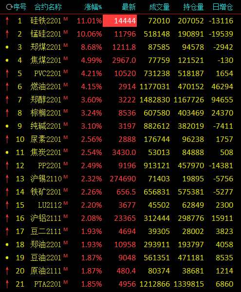 硅鐵漲11.01%,錳硅漲10%,動力煤漲8%,焦煤、燃油、PVC漲4%,甲醇純堿漲3%;生豬跌2%,機(jī)構(gòu)解讀