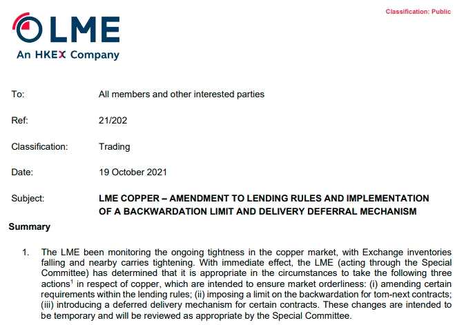 LME公告指出,將采取以下三方面旨在確保市場(chǎng)秩序的臨時(shí)措施:(i)修改貸款規(guī)則中的某些規(guī)定;(ii)對(duì)次日合約的現(xiàn)貨溢價(jià)設(shè)置限制;(iii)為某些合約引入延期交付機(jī)制。