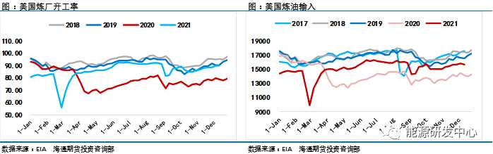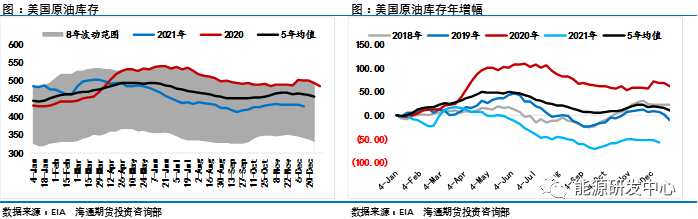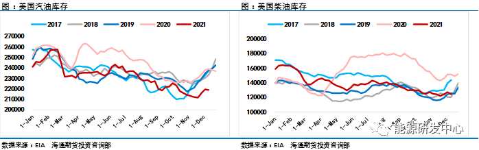 另外,EIA數(shù)據(jù)顯示,美國汽油產(chǎn)品需求達(dá)到創(chuàng)紀(jì)錄的2320萬桶/日,原油出口增加137.5萬桶/日,美國戰(zhàn)略石油儲(chǔ)備原油庫存最近一周跌至2002年12月以來的最低水平。汽油需求的恢復(fù)以及原油出口的增加使得美國原油庫存上周大幅下滑。從季節(jié)性上來看,美國的原油庫存水平進(jìn)入年末季節(jié)性的下滑階段,但這一輪的下滑并不會(huì)持續(xù)太久,在明年一月份到四月份這一階段,原油庫存依舊將會(huì)進(jìn)入到累庫的周期。