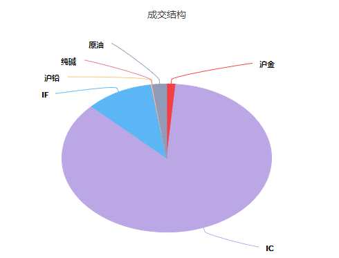 從成交結(jié)構(gòu)顯示,IC占其成交額的85.89%。其余成交有IF、原油、滬金、滬鉛、純堿等。