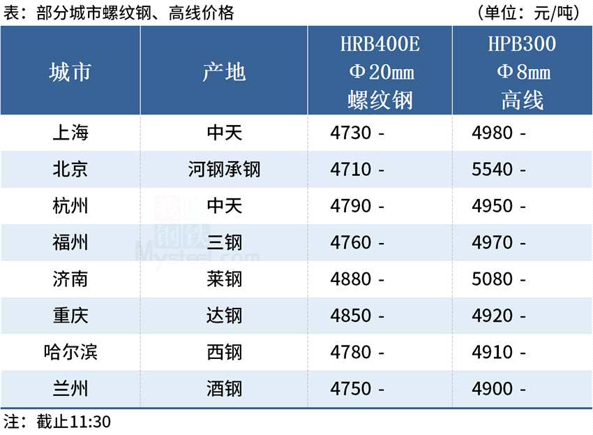 ◎北京:28日早盤建材市場(chǎng)價(jià)格持穩(wěn),河鋼小螺紋4800-4820,大螺紋4700-4710,盤螺4860。(單位:元/噸)