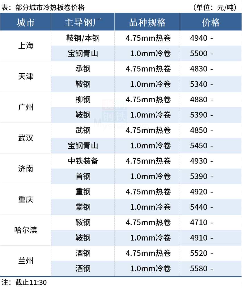 ◎上海:28日早盤熱卷市場(chǎng)價(jià)格暫穩(wěn),現(xiàn)主流報(bào)價(jià)1500普4920-4940元/噸,1800報(bào)4960-4990元/噸;1500錳5050元/噸,1800報(bào)5100元/噸左右,2.75Q235B報(bào)5030-5060元/噸,2.75SPHC報(bào)5150元/噸左右。(單位:元/噸)