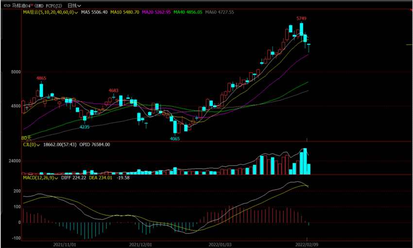 ?。R棕油04合約走勢(shì)圖)