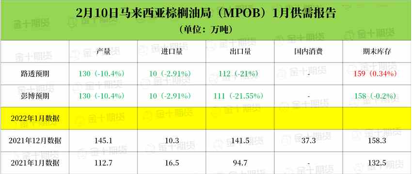 (MPOB 1月棕櫚油供需數(shù)據(jù)前瞻)
