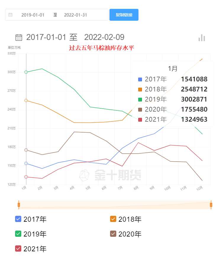 (馬棕油庫(kù)存過(guò)去五年水平)