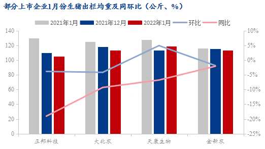 圖4 部分上市企業(yè)1月份生豬出欄均重及同環(huán)比