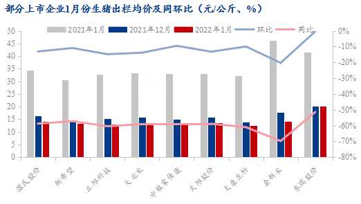 圖3 部分上市企業(yè)1月份生豬出欄均價及同環(huán)比