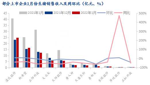 圖2 部分上市企業(yè)1月份生豬銷售收入及同環(huán)比
