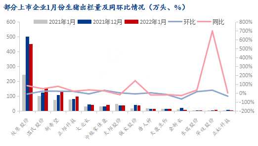 圖1 部分上市企業(yè)1月份生豬出欄量及同環(huán)比情況