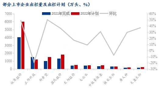 圖5 部分上市企業(yè)出欄量及出欄計劃