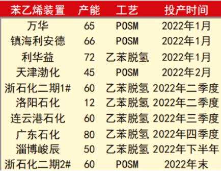 2022年國內(nèi)苯乙烯新增投產(chǎn)計(jì)劃
