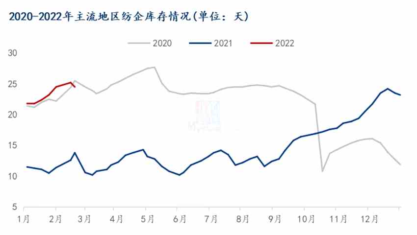 圖3 2020-2022年主流地區(qū)紡企庫(kù)存情況