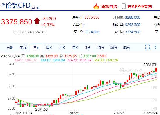快訊:2022年2月24日,倫鋁價格突破2008年高點,創(chuàng)歷史新高。