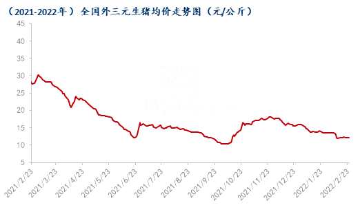 截至2月24日,全國外三元出欄均價12.24元/公斤,較昨日上漲0.01元/公斤,與河北12.18元/公斤接近,最低價云南11.34元/公斤,最高價浙江13.56元/公斤。