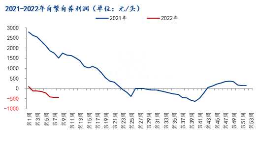 近期形勢嚴峻,對于玉米期貨支撐較強,所以短期盤面價格仍有上漲空間,對于現(xiàn)貨玉米價格形成較強支撐,所以綜合來看,原料價格持續(xù)強勢,會加劇養(yǎng)殖企業(yè)的持續(xù)虧損,截至第8周,自繁自養(yǎng)周均虧損422.20元/頭,較上周下跌0.06元/頭。5.5月前外購仔豬在當前豬價下虧損319.82元/頭,較上周上漲28.03元/頭。雖然說飼料原料玉米及豆粕價格節(jié)節(jié)攀升,使之自養(yǎng)成本不斷加重,但第8周豬價震蕩偏強運行,整體周內(nèi)自養(yǎng)虧損變化不大,外購仔豬養(yǎng)殖利潤依舊受5.5月前仔豬價格走跌影響,成本繼續(xù)下降,外購仔豬養(yǎng)殖虧損再次縮減,隨著下周豬價或有松動,預(yù)計養(yǎng)殖企業(yè)虧損繼續(xù)加大。
