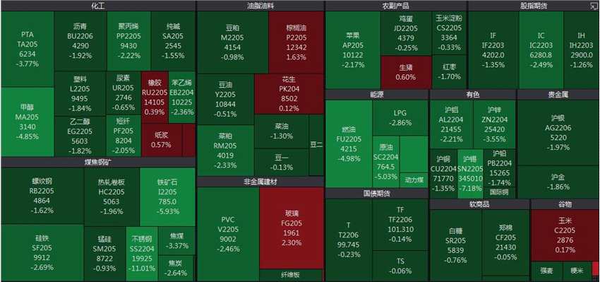 國(guó)內(nèi)期市夜盤(pán)開(kāi)盤(pán)后,未暫停交易的滬鎳期貨NI2208、NI2210、NI2211合約均跌停。其它品種方面,不銹鋼期貨主力合約跌超10%,動(dòng)力煤跌超9%,原油跌超5%,燃油、鐵礦石、滬錫跌超4%;棕櫚油漲超3%。