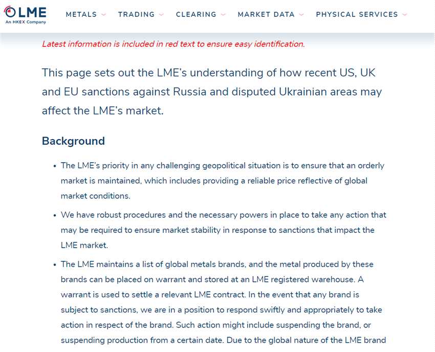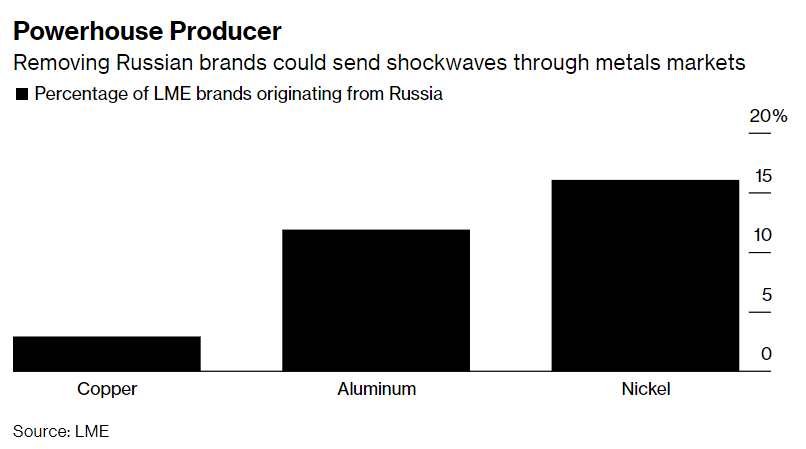 LME此前曾表示,如果在該交易所注冊(cè)的任何金屬生產(chǎn)商受到制裁,它將“迅速做出反應(yīng)”。不過,到目前為止,雖然一些買家有意避開了俄羅斯方面的供應(yīng),但美國和歐洲尚未對(duì)俄羅斯主要金屬生產(chǎn)商實(shí)施制裁。