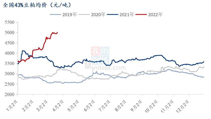 Mysteel解讀:豆粕現(xiàn)貨價格不斷攀升 多地突破5000元/噸