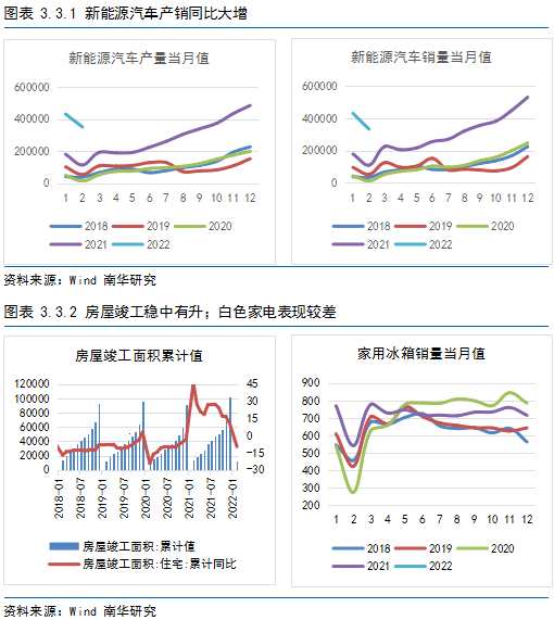 在經(jīng)濟下行壓力較大的背景下,地產(chǎn)相對悲觀的預期逐漸在市場上彌漫。截至到2022年2月,房地產(chǎn)新開工面積約15000萬平方米,同比下降12.2%;施工面積784459萬平方米,同比僅增1.8%;竣工面積12200萬平方米,同比下降9.8%。白色家電表現(xiàn)較差。洗衣機1月銷量同比下跌6.67%,家用空調(diào)銷量同比下跌5.31%,冰箱銷量同比下跌14.47%。在春節(jié)前的相對旺季銷量不佳對于白色家電來說打擊較大,第一季度或整體承壓,對不銹鋼的需求相對較低。