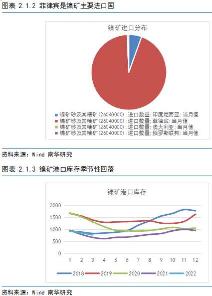 據(jù)測算,2022年菲律賓將有超過6座鎳礦投入商業(yè)運營,主要集中在二季末和三季初。在雨季逐漸結(jié)束后,鎳礦進口在第二季度或僅保持規(guī)律性的季節(jié)性增長,在三季度或能夠迎來爆發(fā)。
