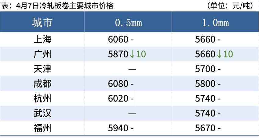 冷軋板卷:4月7日,全國24個主要城市1.0mm冷卷均價5747元/噸,較上個交易日上漲2元/噸。據(jù)貿(mào)易商反饋,目前現(xiàn)貨價格處于相對高位,而終端訂單情況并不飽和,市場需求表現(xiàn)不溫不火,再加上各地疫情較為嚴(yán)峻,運輸受阻,資源無法正常流通,故近期成交表現(xiàn)偏差。因鋼廠資源投放速率緩慢,市場整體供應(yīng)壓力較小,從而貿(mào)易商挺價意愿較強。庫存方面,據(jù)Mysteel不完全統(tǒng)計,現(xiàn)冷軋鋼廠庫存41.34萬噸,周環(huán)比增加1.43萬噸,社會庫存137.24萬噸,周環(huán)比減少1.12萬噸,周消費量84.65萬噸,環(huán)比增加3.75萬噸。綜合來看,故預(yù)計8日國內(nèi)冷軋板卷價格或?qū)⑷醴€(wěn)運行。