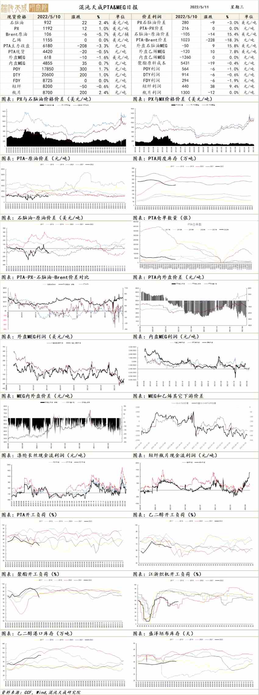 庫存:到5月5日,PTA周工廠庫存3.95天,增加0.01天,比同期減少0.25天。聚酯工廠pta原料庫存7天,比上周減少0.43天,比同期減少1.04天。