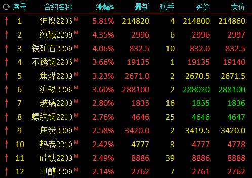期市早盤多品種持續(xù)拉漲:滬鎳漲近6%,純堿、鐵礦石漲逾4%