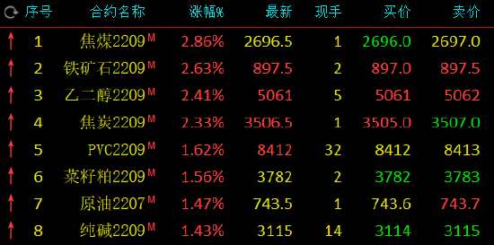 5月31日,國內期市開盤,焦煤、鐵礦石、乙二醇漲逾2%,紙漿跌近4%。