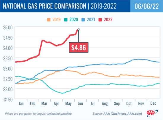 美國汽油價(jià)格周一再創(chuàng)歷史新高(來源:美國汽車協(xié)會(huì))